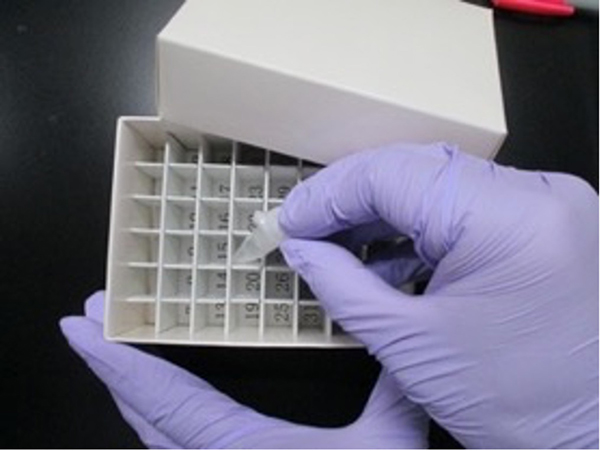 サンプルの入ったチューブに油性マジックでサンプル名を明記してください。シールを使用する場合は、凍結保存用のシールをご使用ください。輸送中にシールが剥がれることもありますので、念のためチューブにも油性ペンで直接記入してください。